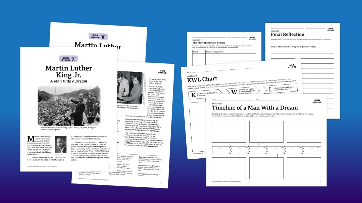 In celebration of his vision and in honor of Martin Luther King Jr. Day, the BBC Learning Hub has curated resources specifically for grades 3-5 and 6-12. Videos, articles, and printables to help your students engage with MLK's enduring message.