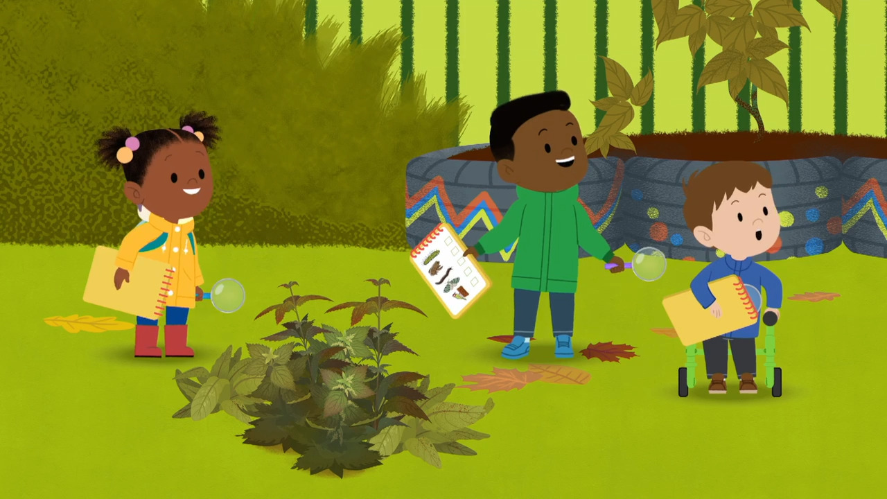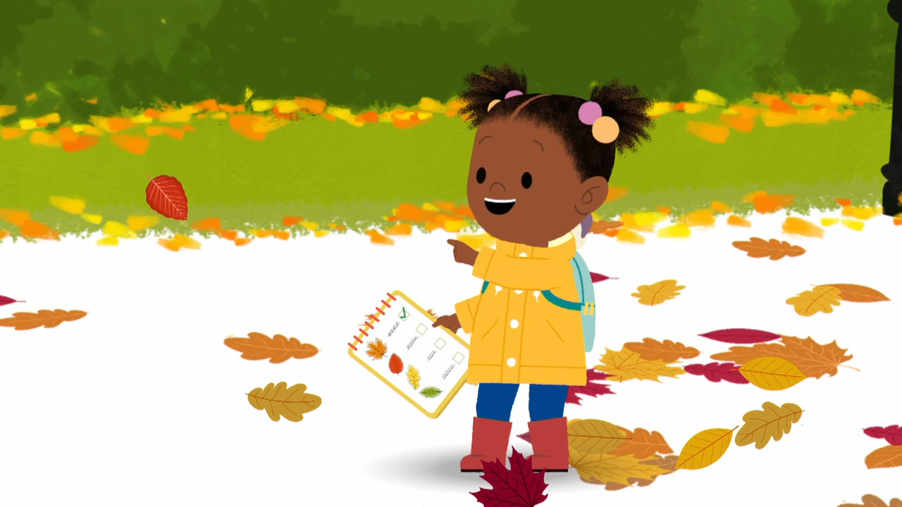 In JoJo and Gran Gran Look for Leaves, JoJo searches for leaves to complete her checklist until she realizes she can’t find a green leaf. Gran Gran suggests a solution. Real-life friends collect leaves that have fallen from the trees. This video is excerpted from BBC’s JoJo & Gran Gran, a children's animated television series following JoJo, an inquisitive and cheerful 4-and-a-half-year-old girl and her loving Gran Gran, who always has something new to teach her.