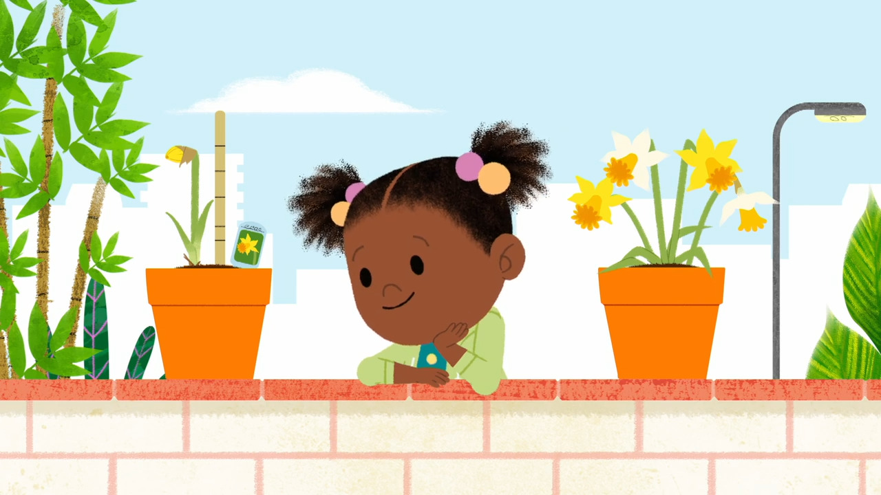 In JoJo and Gran Gran Grow Flowers, Jared gives JoJo a daffodil plant to grow. When they get home, JoJo gives the plant what it needs to grow and then gets impatient when it’s not growing fast enough. Real-life friends plant seeds in pots. This video is excerpted from BBC’s JoJo & Gran Gran, a children's animated television series following JoJo, an inquisitive and cheerful 4-and-a-half-year-old girl and her loving Gran Gran, who always has something new to teach her.