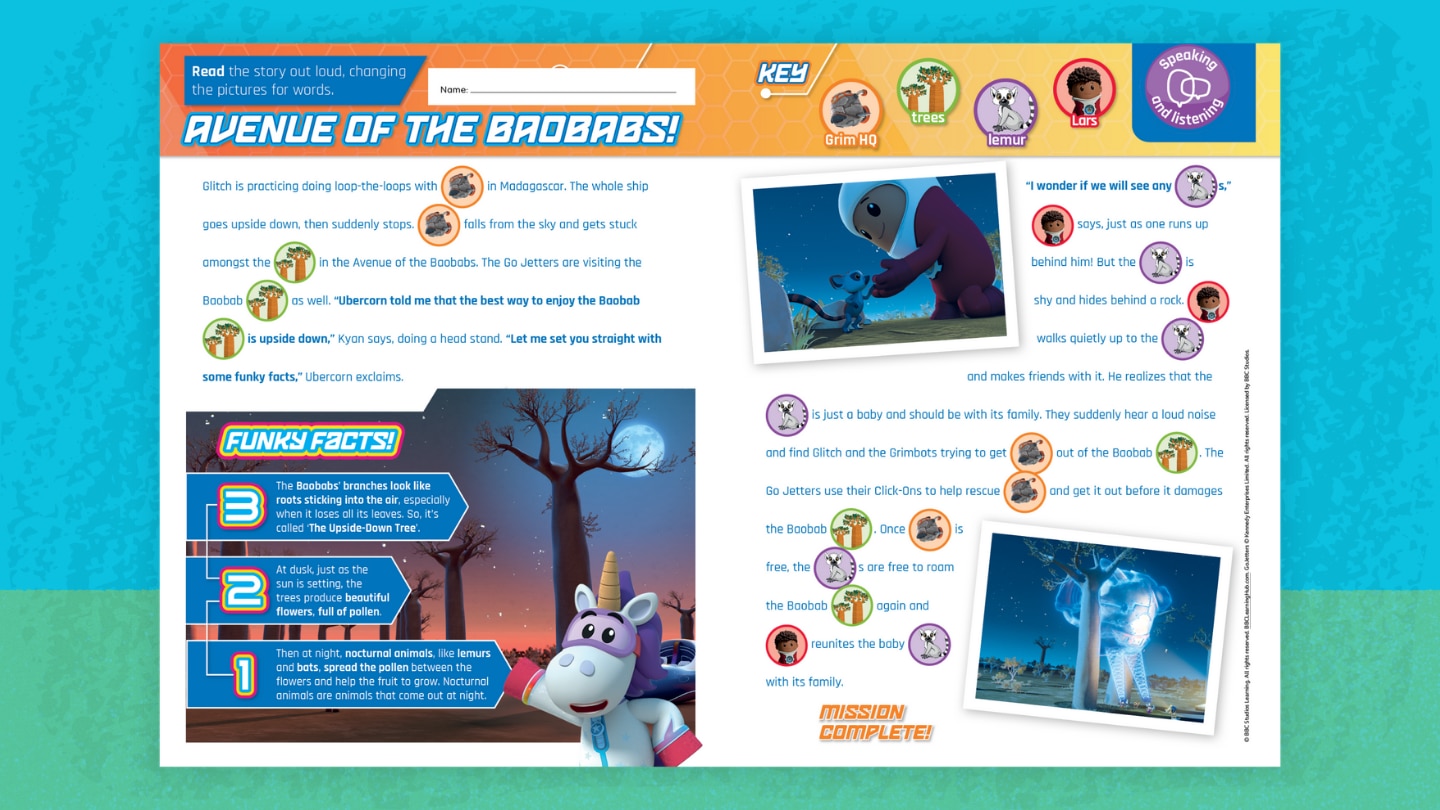 Join the Go Jetters on a magical sunset-to-night adventure to the Avenue of the Baobabs. In this fun story, you'll: