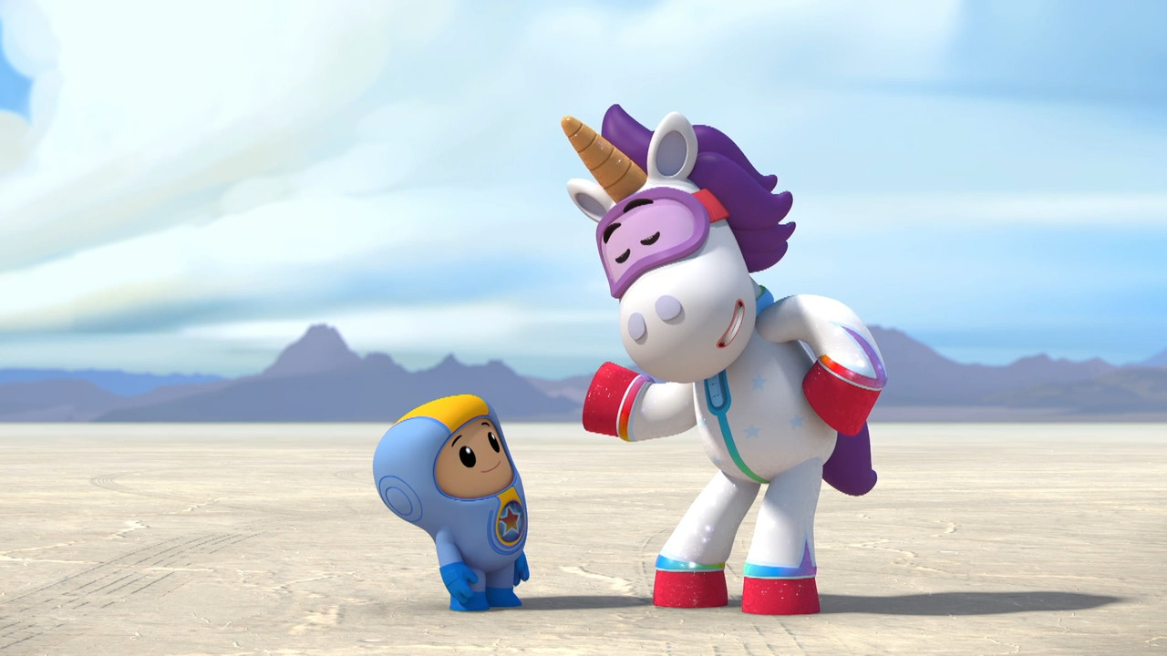 In The Go Jetters Explore the Bonneville Salt Flats of Utah, the Go Jetters crew checks out the salt-covered surface of the Bonneville Salt Flats in Utah. Ubercorn shares funky facts about this dried up lake, including just how fast we can drive on its surface, and how it was created. This video is excerpted from BBC’s Go Jetters, a series that follows the adventures of four international heroes as they travel the globe visiting landmarks and solving environmental problems with Ubercorn, a disco-dancing unicorn.