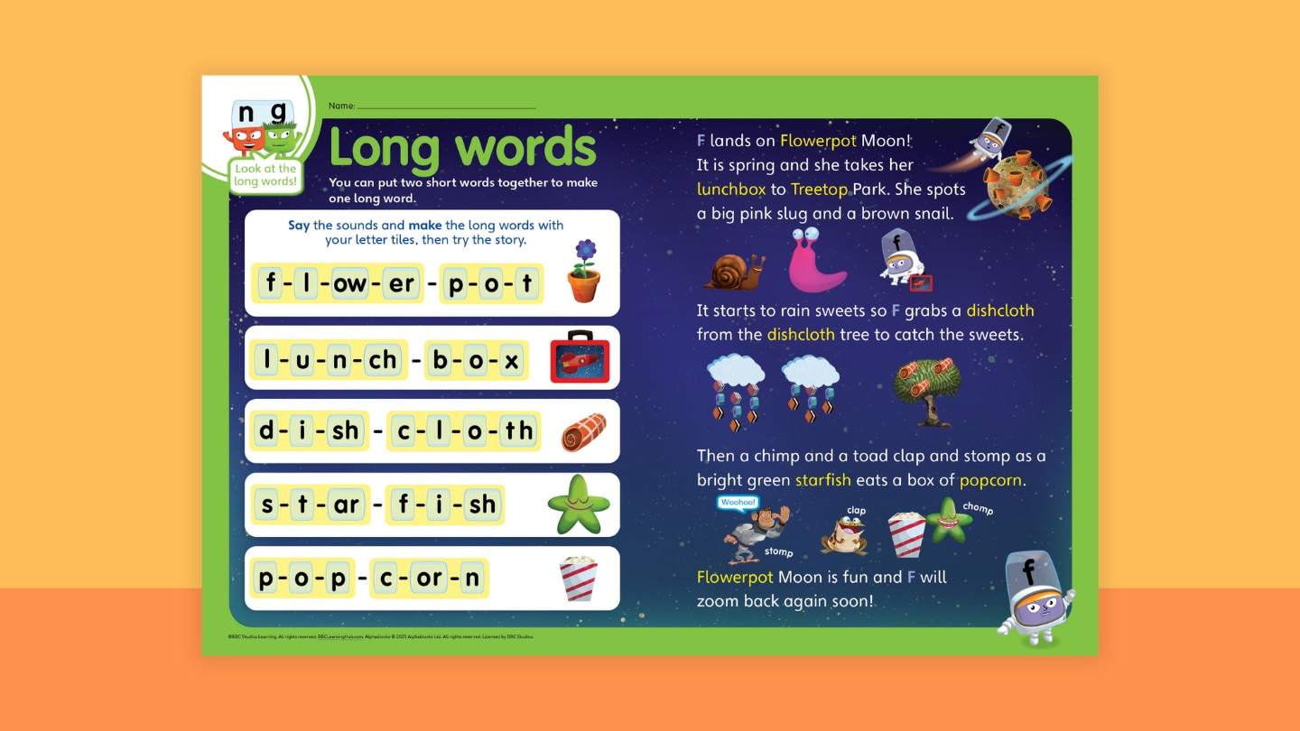 You can put two short words together to make one long word. Say the sounds and make the long words with