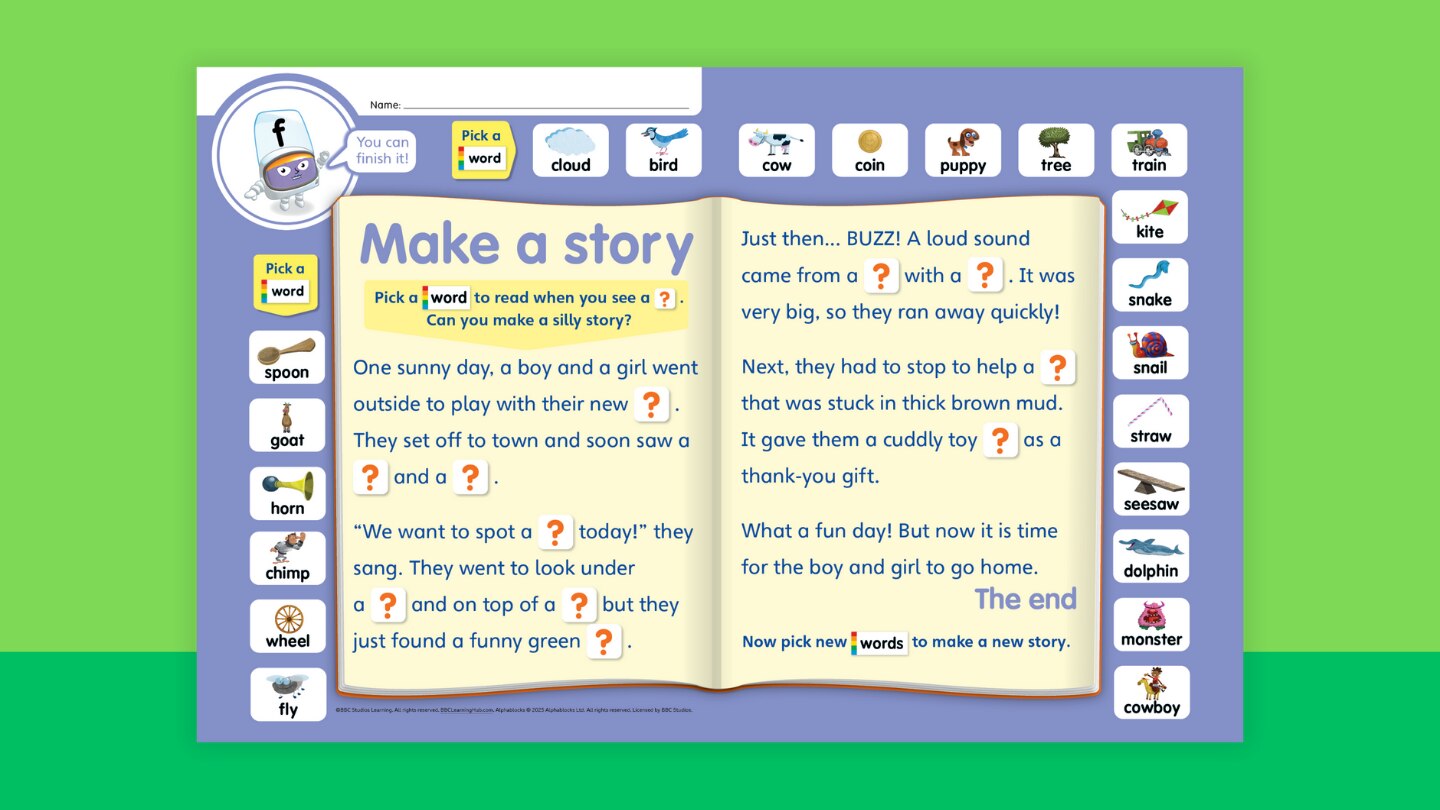 Practice blending sounds with a thrilling race full of fast cars, flying jets, and digging machines. Read along, build the words, and see if you can keep up with speedy V!