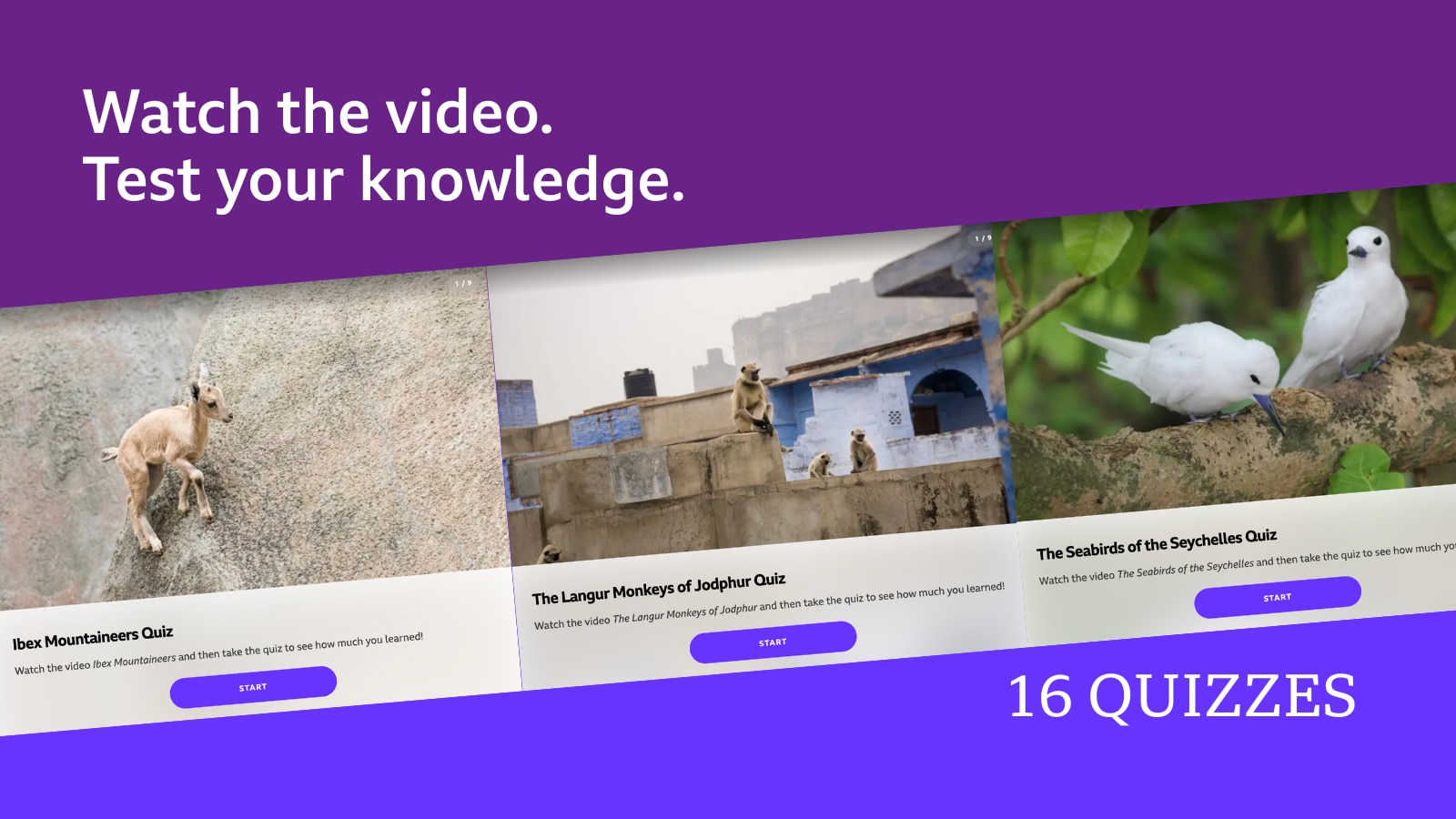 Who doesn't love animal facts? Invite your Grade 3–8 students to watch wildlife videos from the award-winning BBC series Planet Earth, in which Sir David Attenborough takes them up close and personal with incredible animals across awe-inspiring landscapes. Then, they can see how much they learned with one of these are 16 engaging quizzes (we're big fans of our guess the image question type!). The videos are linked under each quiz page. Assign one or assign them all!
