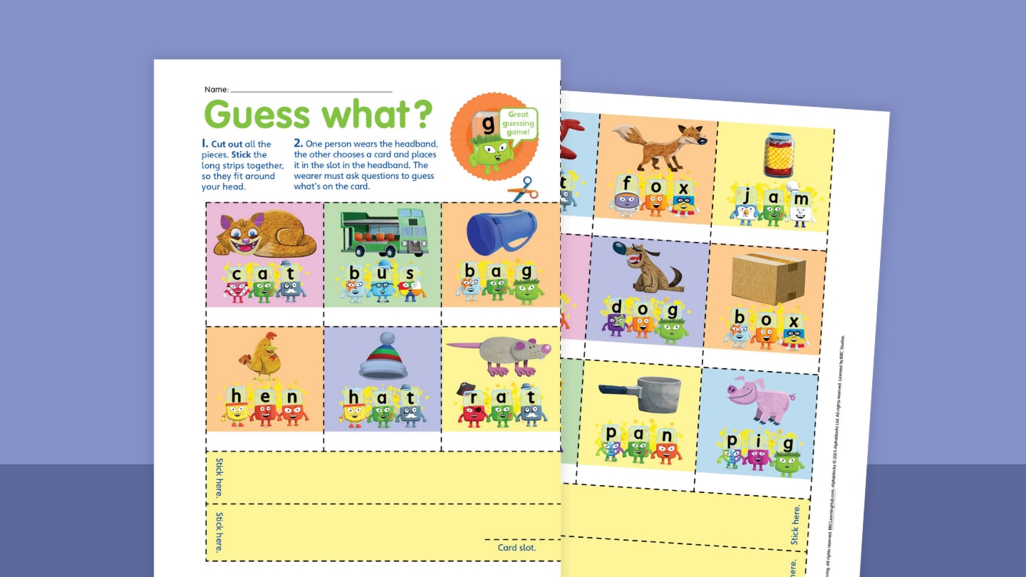 - One person wears the headband; the other chooses a card and places it in the slot in the headband. The wearer must ask questions to guess what's on the card.