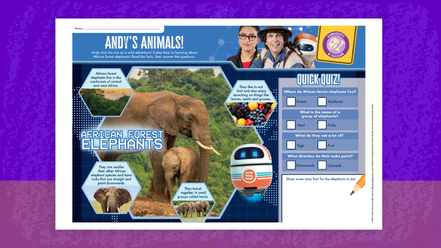 Journey into the rainforest with Andy! In this fun African forest elephants worksheet, you'll:
