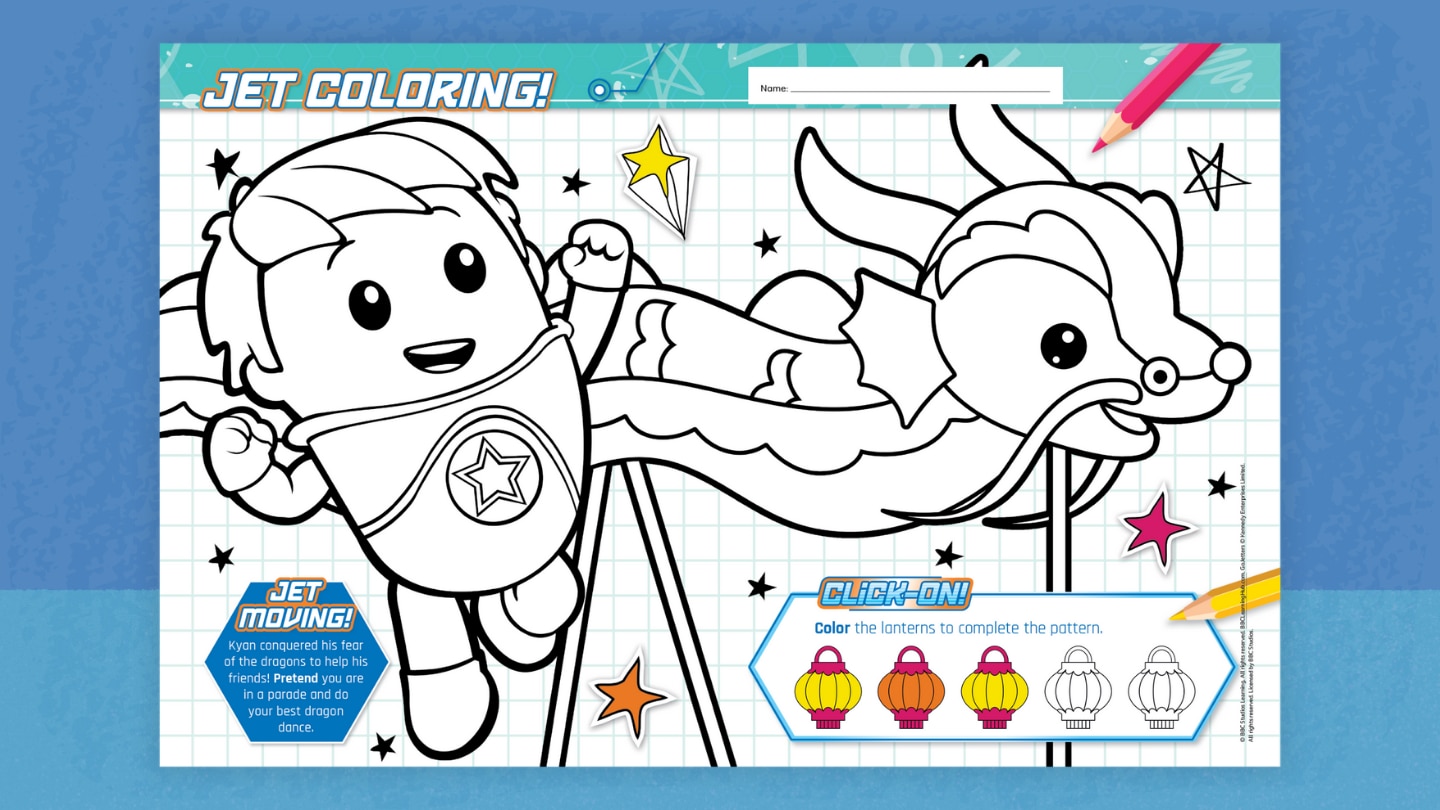 Kyan conquered his fear of the dragons to help his friends! Pretend you are in a parade and do your best dragon dance. Color the lanterns to complete the pattern.
