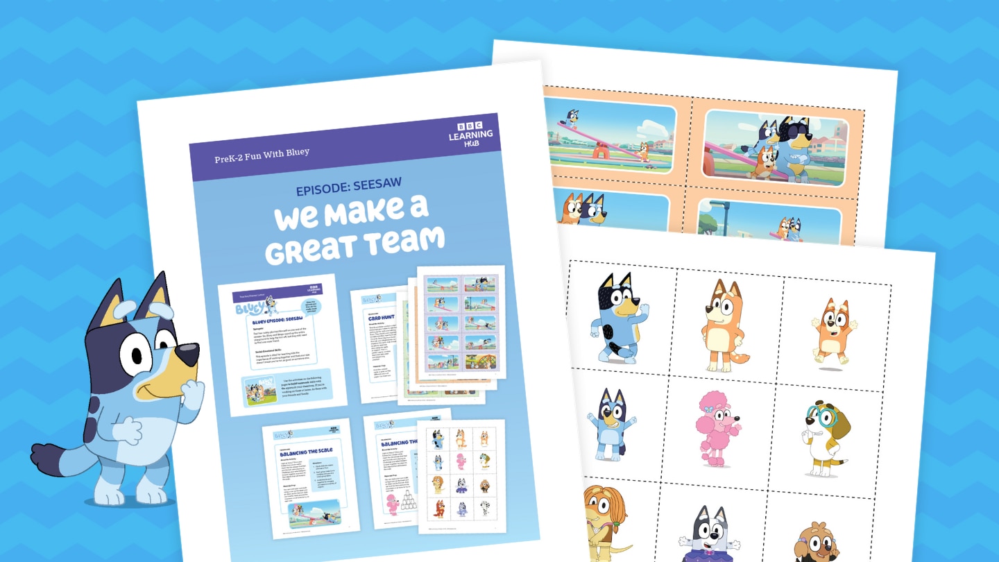 This fun lesson uses the Bluey episode "Seesaw" as the kickoff to a classroom conversation about the importance of teamwork. And everyone can contribute to a team! The lesson includes printables for three activities in which kids work in small teams to complete challenges like putting episode event cards in order, balancing a classroom-made scale, and building the tallest cup tower they can.
